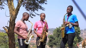 Uganda: ook in het tehuis Wipe a Tear starten de saxofoon-leerlingen met het instuderen van het stuk, onder leiding van muziekdocenten Tony en Claire. En als we de beelden van het oefenen uit de drie landen achter elkaar zetten krijg je meteen een indruk waar het naar toe gaat!